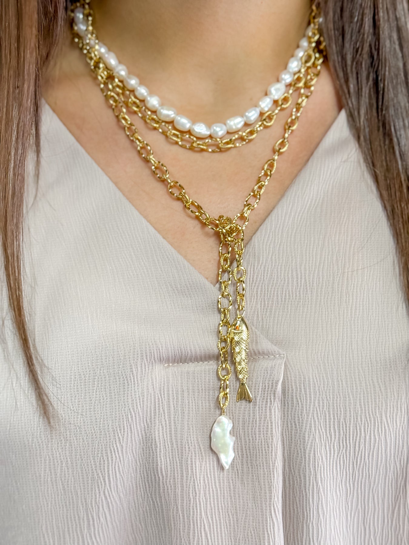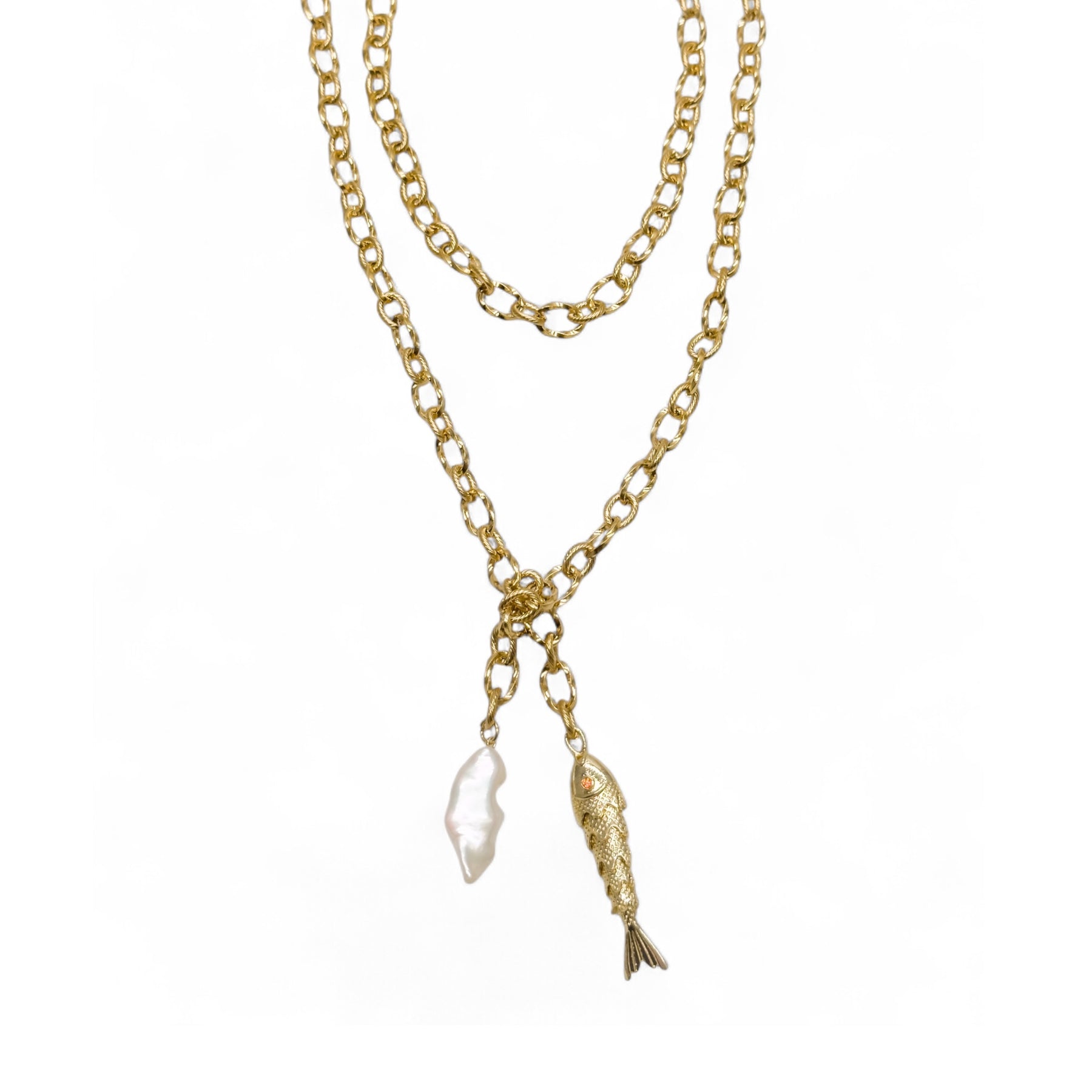 --Features an articulating fish and freshwater pearl on each end for a charming piece full of personality!