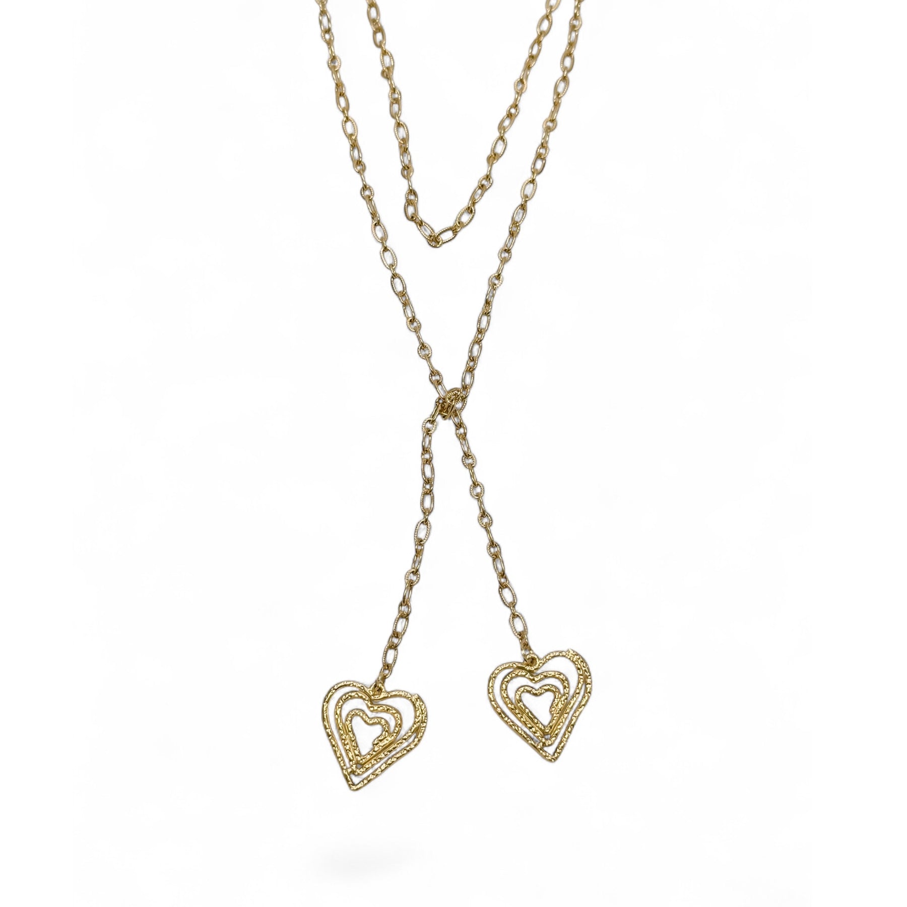 --Features two spiral-design textured heart charms for a playful vibe
