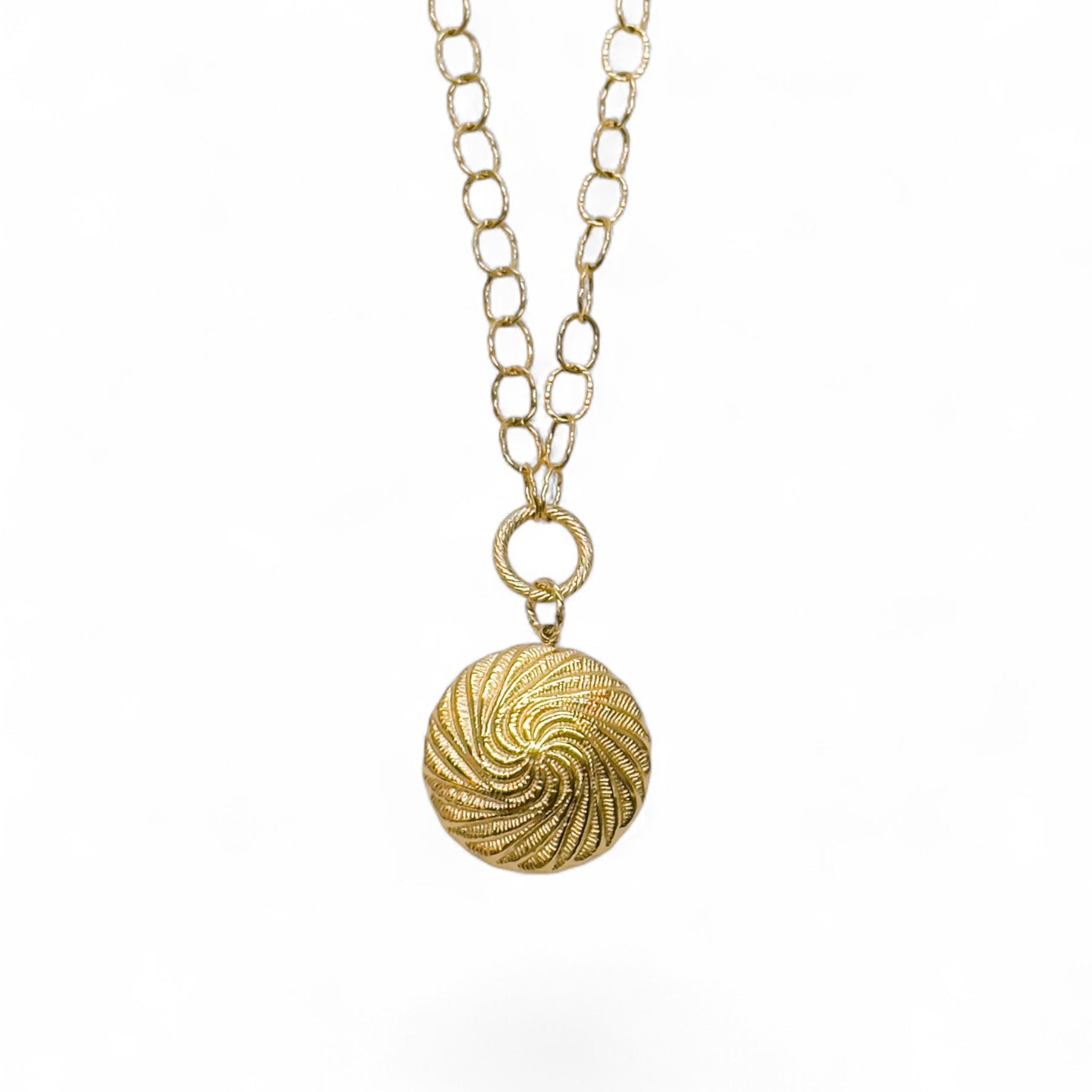 The Somerset Necklace combines understated sophistication with thoughtful craftsmanship. A textured disk pendant pairs seamlessly with a delicately hammered link chain, creating a piece that transitions effortlessly from day to evening. The interplay of matte and subtle dimension catches light without demanding attention, making it an ideal foundation for layering or wearing alone. Versatile enough for any occasion, this necklace embodies the kind of refined simplicity that becomes a wardrobe essential.